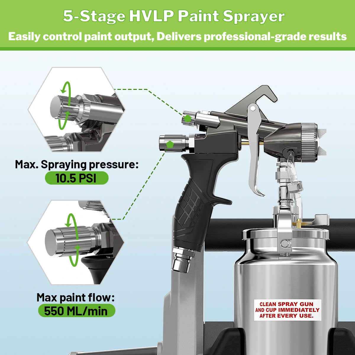 Professional-Grade Finish: Upgraded 5-Stage HVLP Turbine—Max Efficiency, Minimal Waste, Flawless Finish